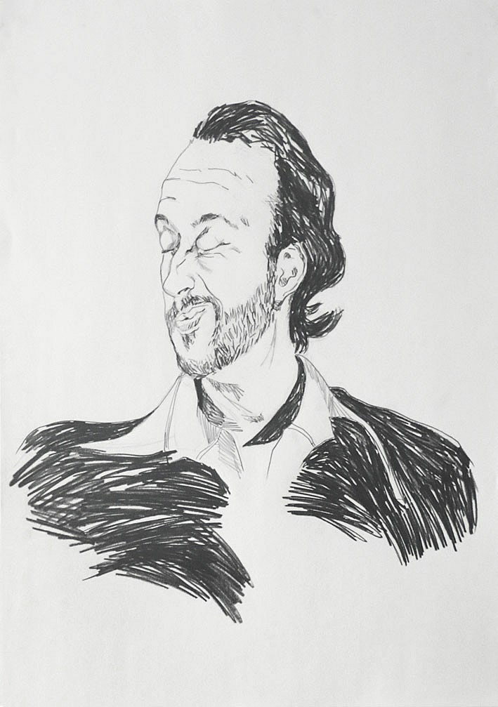 Self-portrait while thinking, 2007. Graphit on paper. 70 x 50 cm