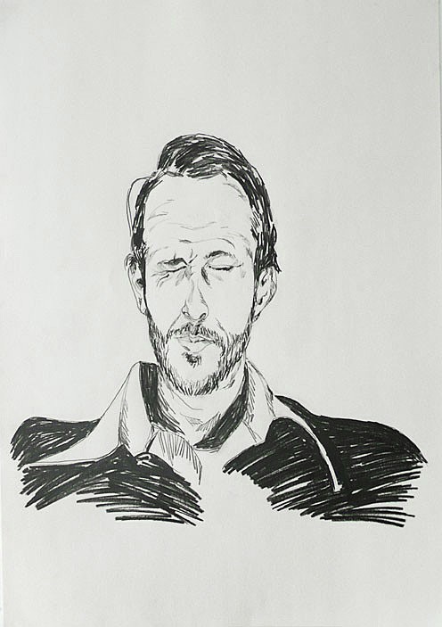 Self-portrait while thinking, 2007. Graphit on paper. 70 x 50 cm