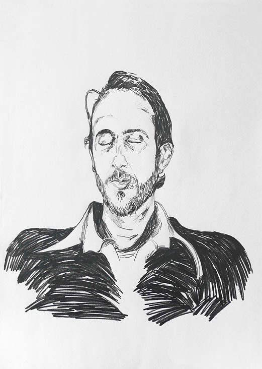 Self-portrait while thinking, 2007. Graphit on paper. 70 x 50 cm