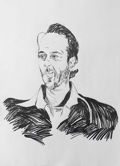 Self-portrait while thinking, 2007. Graphit on paper. 70 x 50 cm