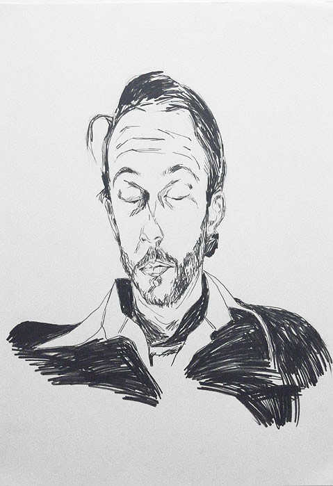 Self-portrait while thinking, 2007. Graphit on paper. 70 x 50 cm
